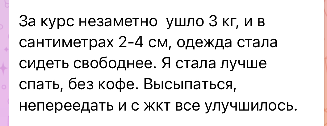 Результаты варьируются, но обычно клиенты замечают улучшение энергии, настроение, снижение веса или улучшение здоровья, в зависимости от целей и работы